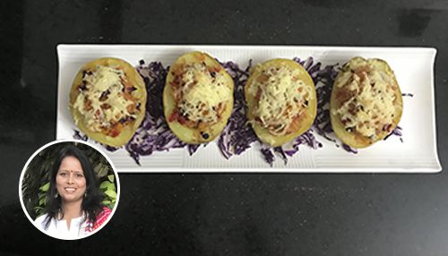 This recipe is a kids' favourite as it has lots of cheese. This potato cup can be had as a starter too.