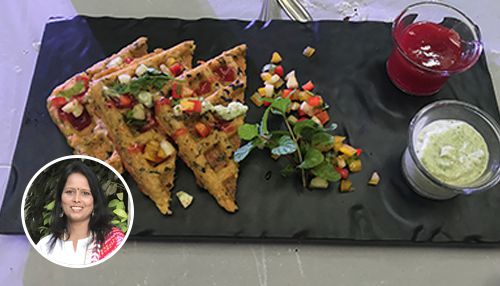 Veggie Waffle With Strawberry Sauce & Curd Coconut Dip