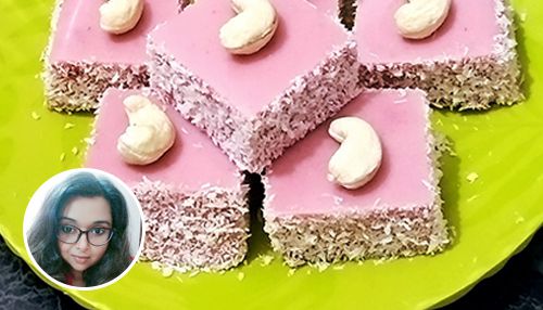 These delightful strawberry barfis will fill you with joy. The lovely pink tone adds freshness to the dessert. It is a cute looking yet yummy dessert that is a must for Holi.