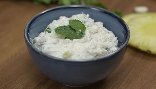 This tangy, refreshing raita can be served with anything ! It is rich in fiber and vitamin C.