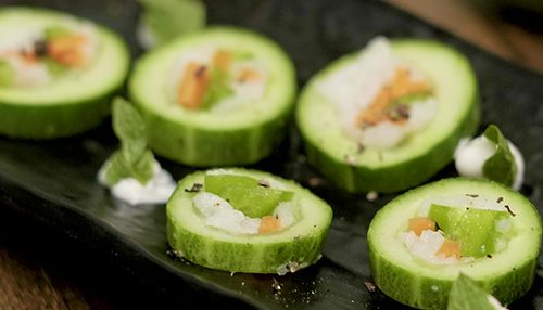 Here's an interesting twist to sushi by using cucumber and colorful veggies. Sneak in veggies for your little ones with. Easy and healthy way to get your kids eating raw foods. Crunch of fresh veggies and color will definitely appeal your child.