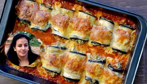 Sliced eggplant stuffed with Italian cheese, doused in a scrumptious sauce, and baked till tender.