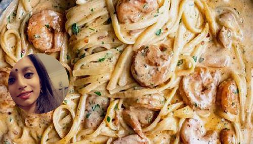 The recipe is a rich combination of spinach and walnuts glazed with a creamy cheese sause.