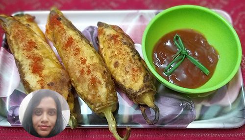 A spin on the regular stuffed mirchi, fish-stuffed batter-fried mirchi makes for a great tea-time snack.
