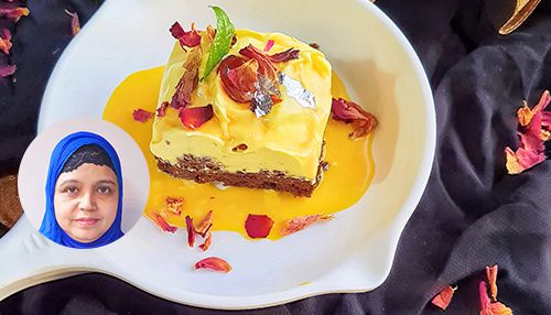 Moong dal brownie with Saffron Tres leches