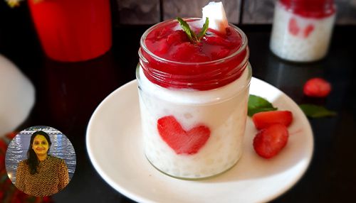 A delicious Thai dessert with strawberry compote and coconut milk cooked with spices and herbs.