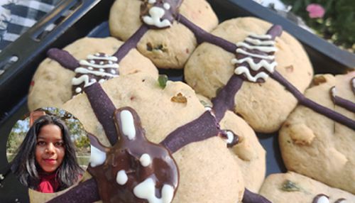 A healthier, eggless version of the traditional Easter special, Hot Cross buns. Made with whole wheat flour and an added surprise of tutti frutti and raisins gives it a whole new taste.