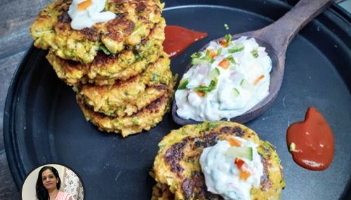 Broccoli Zucchini Fritters with Hung Curd Dip