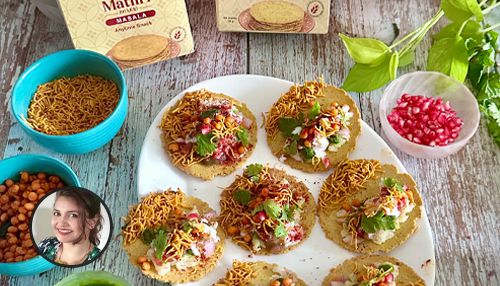 Papdi chaat is one of the most famous North Indian street food recipes. Here I replaced Papaji with Tasties Baked Mathri Bhakri. This chaat is unbelievably easy to make, it’s jam-packed with combinations of flavors and everyone loves it. If you serve this to your party, I’m sure there will be no leftovers.