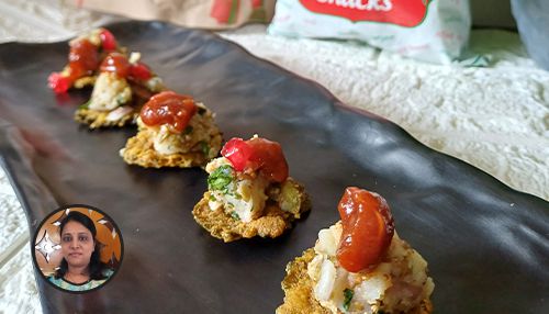 This is a healthy topping chaat with Karela chips.