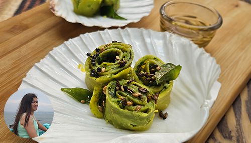Podi khandvi rolls are an easy, quick and healthy snack for monsoon. Super easy to make with bb Royal ingredients.