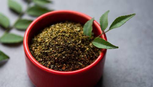 Wash the curry leaves thoroughly and wipe together using a cotton cloth till dry.