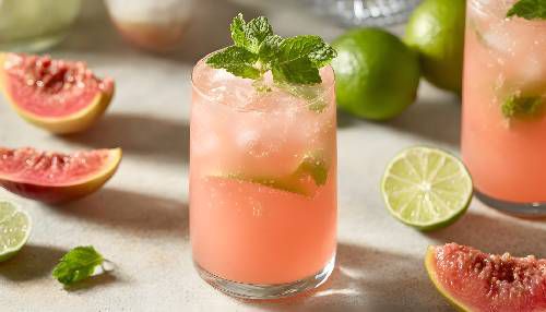 A tropical twist on a classic, this Guava Mojito blends sweet guava with zesty lime and fresh mint for a refreshing sip.