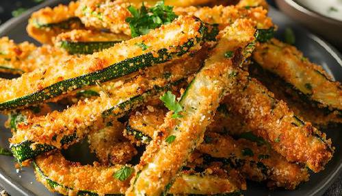 Crispy Zucchini Fries are a lighter, herby twist on the classic fry, made with zucchini, oregano, and basil for a crunchy, flavorful bite.