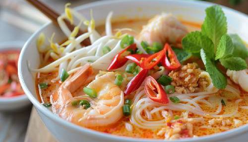 A fragrant, spicy-savoury noodle bowl loaded with shrimp, curry warmth, and Singaporean street-style flair.