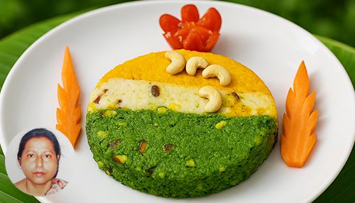 A creamy, no-bake Tiranga Milk Cake that layers rich milk solids with natural spinach green and saffron hues, celebrating flavour and patriotism in every slice.