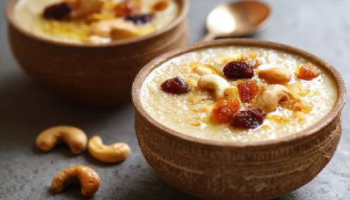 A traditional, creamy dessert made with foxtail millet, milk, and aromatic cardamom, finished with roasted dry fruits.