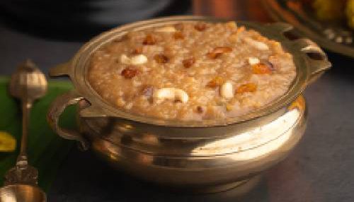 A traditional, creamy payasam made with little millet, milk, and cardamom, finished with roasted dry fruits.