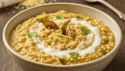 A comforting South Indian millet dish cooked in buttermilk and finished with a simple ghee tempering.