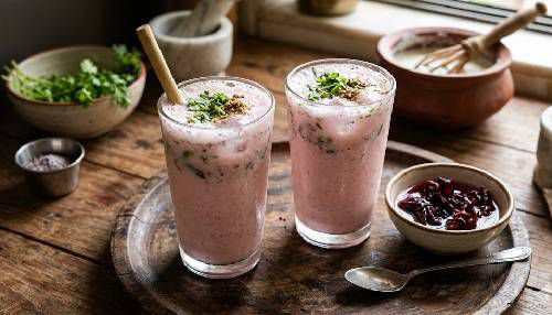 Tangy kokum blended with lightly spiced buttermilk creates a refreshing probiotic drink that cools the body and refreshes instantly.