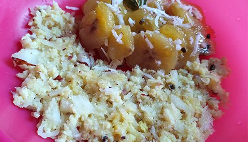 Easy-to-prepare traditional dessert. Healthy and tasty combination of banana, coconut and cardamom.