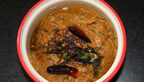 This chutney prepared with several spices is a delightful fusion of flavors. Can be served with rice and dosa.