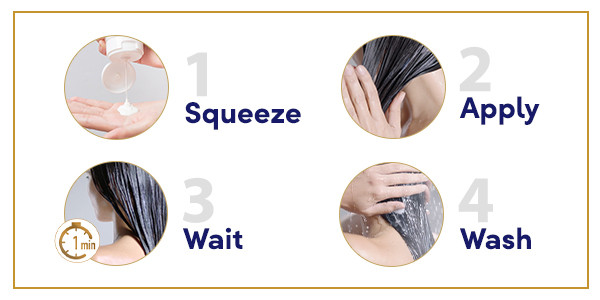 - Apply on hair from ear to tips. Do not apply on scalp