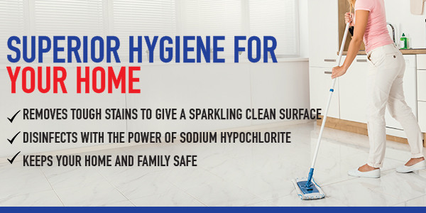 •Contains Sodium Hypochlorite as recommended by leading health organisation for disinfecting surfaces.