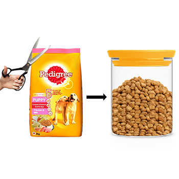 - On opening the pack, store Pedigree dog food in an air-tight container, in a cool and dry place.