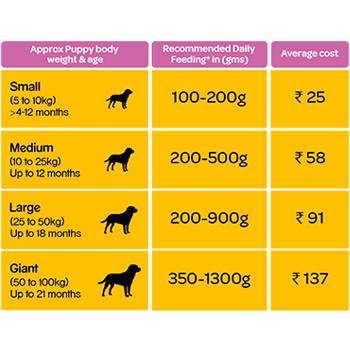 • Dog’s weight (10-25 kg): 200-500 g/day.
