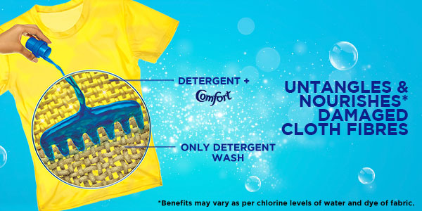 Repeated washing can tangle the fibres of your clothes & make them rough, dull & lifeless. Comfort conditions the fibres of your clothes to keep them shining like new, even over repeated washing.
