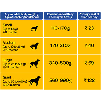 • Dog’s weight (25-50 kg): 340-500 g/day.
