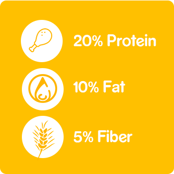Contains Min. 20% Protein, Min. 10% Fat & Max. 5% Fiber.