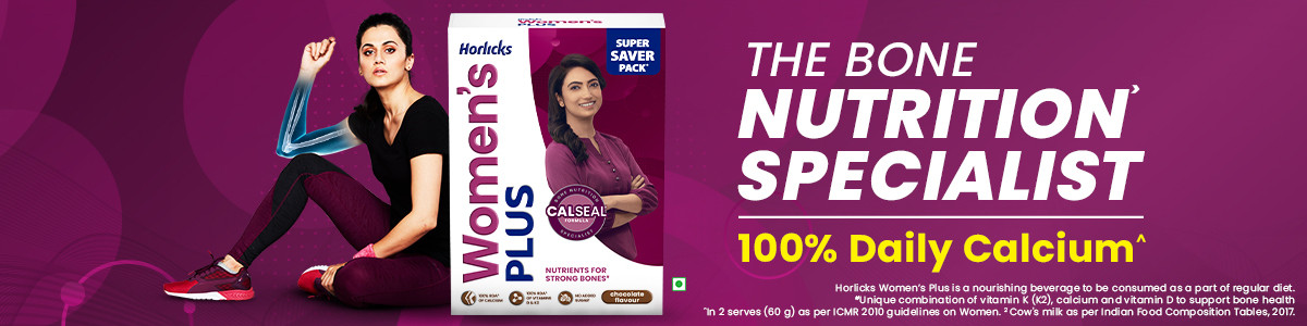 Horlicks Women’s Plus is a bone nutrition specialist powered with CALSEAL# formula. It provides 100% RDA^ of Calcium, Vitamin D & Vitamin K2 requirements.