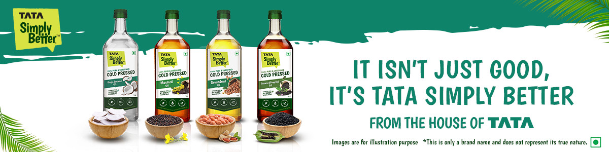 With Tata Simply Better 100% Pure and Unrefined Cold Pressed Virgin Coconut Oil, you get the goodness of real coconuts. This cold-pressed coconut oil ensures purity and aroma in every drop because it is extracted from A1-quality coconuts. The technology used in Cold Pressing helps protect the essential vital nutrients, rich aroma & flavour of real coconuts. Why wait? Make Tata Simply Better Cold Pressed Virgin Coconut oil - your cooking partner & a part of your daily regime!