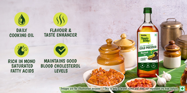 With Tata Simply Better 100% Pure and Unrefined Cold Pressed Mustard Oil, you get the goodness of real mustard seeds. This cold-pressed mustard oil ensures purity and aroma in every drop because it is extracted from A1-quality mustard seeds. The technology used in Cold Pressing helps protect the essential vital nutrients, rich aroma & flavour of real mustard seeds. Why wait? Make Tata Simply Better Cold Pressed Mustard Oil - your cooking partner & a part of your daily regime!