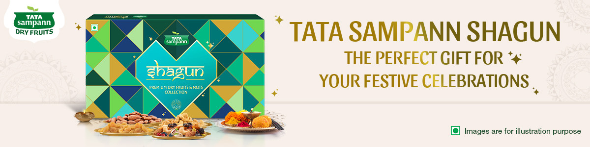 Tata Sampann Shagun is a choicest gift for festive celebrations, corporate gifting and even as a hamper for family functions. Gift happiness with the choicest selection of quality nuts and dry fruits, making this festive season brighter and auspicious. Let's make celebrations more special with Tata Sampann Shagun.