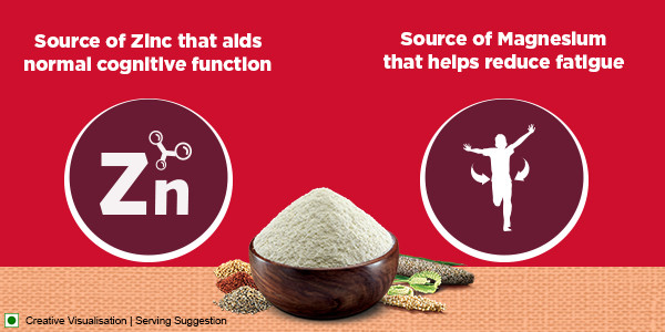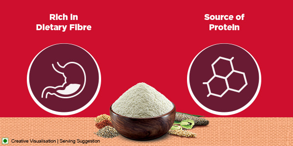 Aashirvaad Multi Millet Mix is not only tasty but is also loaded with nutritional benefits. It is rich in dietary fibres which aids in digestion. It is a source of protein. The flour is a source of magnesium which helps you power through the day by reducing fatigue. It is also a source of zinc which aids normal cognitive functions.