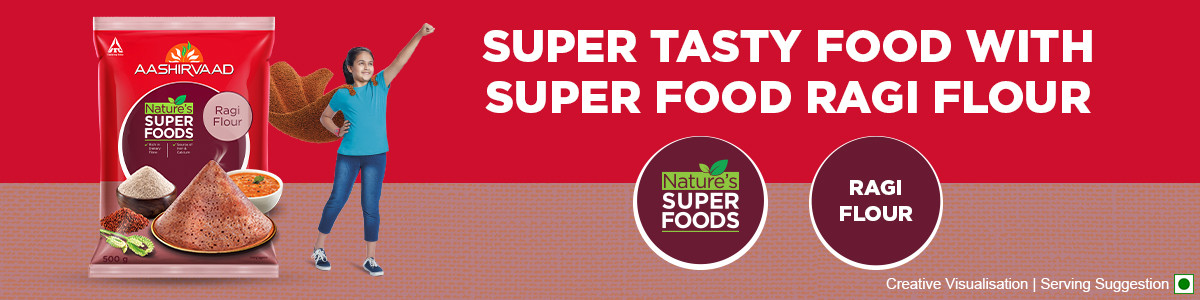 Aashirvaad Nature's Superfoods Ragi Flour changes your daily general flour intake and replaces it with Superfoods elements of nutrients and fibers. Rich in flavour and nutrition, it ensures the best of both worlds.