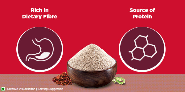 Aashirvaad Ragi Flour is not only tasty but is also loaded with nutritional benefits. It is rich in dietary fiber which aids in digestion. This flour is also a source of protein. The flour is a source of calcium which helps in maintaining bone health. It is also a source of iron which aids in the formation of hemoglobin.