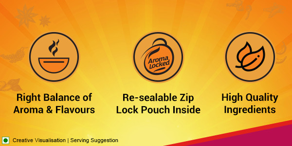 Made from the choicest stalkless Kashmiri chillies to give the right colour and taste. The ingredient spices are sourced locally from across India and selected by experts to ensure the right aroma, pungency and quality. The pack consists of "Aroma Locked Technology" which ensures that the product has long lasting freshness.