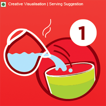 Remove contents from cup and add boiling water till watermark (approximately 95ml).