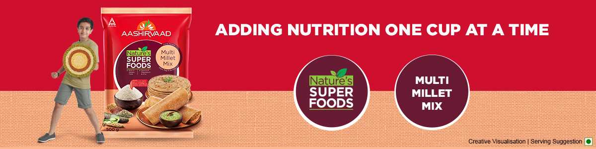 Aashirvaad Nature's Superfoods Multi Millet Mix comes with the wholesome goodness of all the vital millet grains combined. It is made from ancient grains like Jowar, Bajra, Ragi, Quinoa and Navane. Now, you and your family can get the best of every meal!