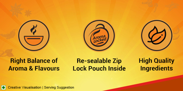 Inspired from the iconic eat streets of Punjab, this rustic spice blend offers the original dark colored, tangy and flavourful punjabi chole with the right texture to the gravy. The ingredient spices are sourced locally from across India and selected by experts to ensure the right aroma, pungency and quality. The pack consists of "Aroma Locked Technology" which ensures that the product has long lasting freshness.