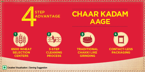 Aashirvaad uses a world class packaging technology which ensures zero human contact with the packs, thereby making the Atta 100% safe and tamper proof.