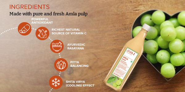 Amla is an ancient ingredient considered as a powerhouse of nutrition and a superfood. Jiva Amla Juice is rich in Vitamin C, iron, calcium, fibre, magnesium and zinc. Thus, it provides complete nutrition and health benefits when consumed regularly.