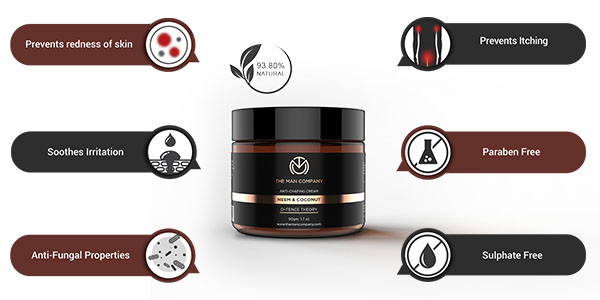 The Defence Theory Anti- Chafing cream comprises moisturizing properties of coconut that provides soothes to the affected areas. It relieves the itching and redness caused due to the soreness and chaffing of the skin through its calming properties. The neem extracts rapidly heel the irritated skin and also helps to brings back the lost skin texture.Chafing generally takes the form of raised skin or rash caused by friction either from skin on skin or skin on clothing infuriated by sweat. Often seen as a red rash, chafing is extremely uncomfortable and painful, but 100% normal and very common. Defence Theory Anti- Chafing cream is for your delicate/private areas.