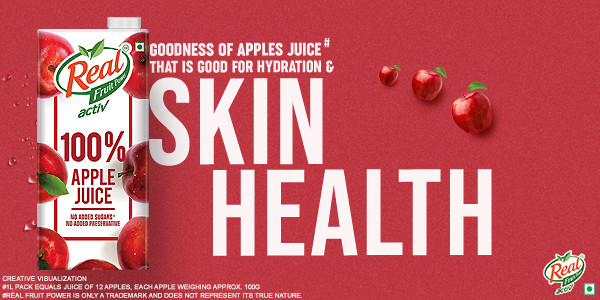 Real Activ Apple Juice contains 100% Apple Juice with No added Sugars , Preservative and Flavours that is good for Hydration and Skin Health.