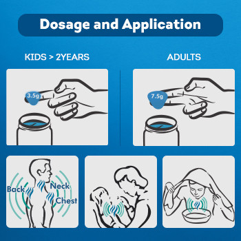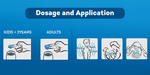 Topical Application: As rub on massage for temporary relief from dry coughs and body aches and muscular stiffness due to colds. Gently apply Vicks VapoRub on chest, neck and back before bedtime.