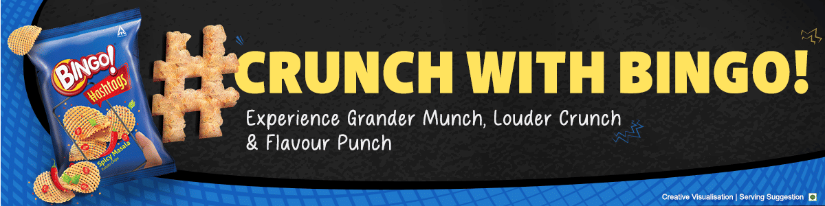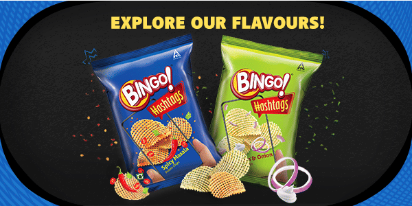 A checkered wonderland of chips, Bingo! Hashtags elevates your snacking experience to new heights. The spicy masala flavour is now intensified, creating a taste explosion that lingers on your palate.